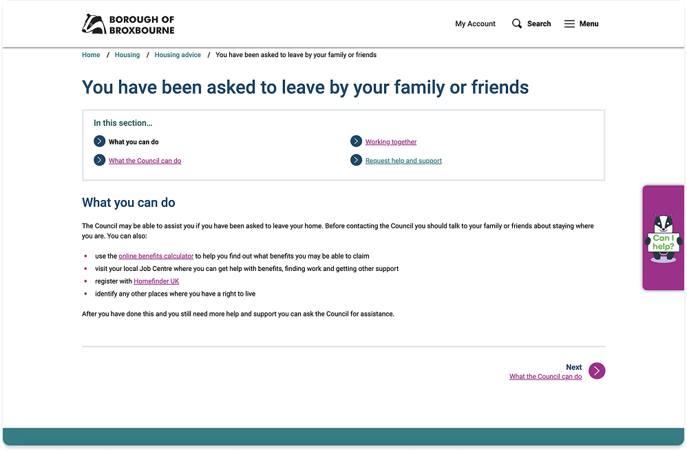 • Improve the experience for those who are in a vulnerable state looking for housing, to get the helpful information and aid that they need depending on their situation.